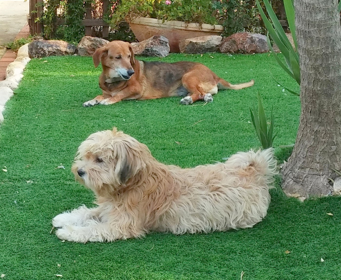 קלי מקדימה וז'וז'ו מאחור. קלי הייתה כלבה דעתנית ודומיננטית והשליטה את מרותה על הסביבה וכלבים יותר גדולים חששו ממנה ולמרות שלא הייתה תוקפנית באופן מיוחד נהמותיה היו מרתיעות. גם כשהייתה נכה, בסוף ימייה, כלבים לא התעסקו איתה. האם קלי הייתה אלפא? האם יש דבר כזה?